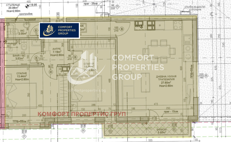 -Дневна с трапезария и кухненски бокс 27.60 кв.м