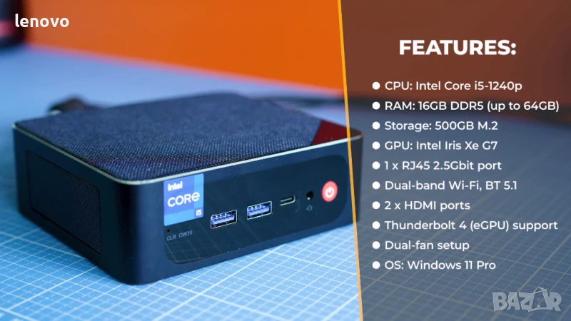 Продавам мини компютър Beelink SEi12 – i5-1240P, 16GB RAM, 512GB SSD
