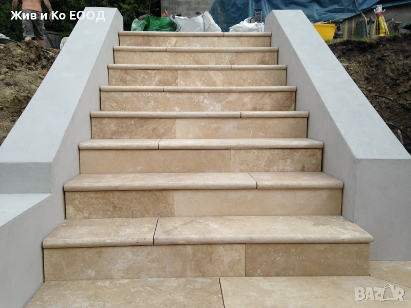 Травертин шлайфан 30×60×1.2 см + френч патерн и стъпала → Обява 50986020