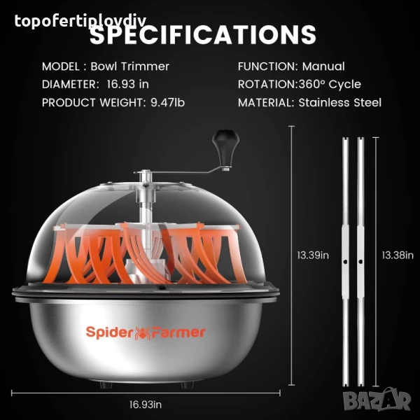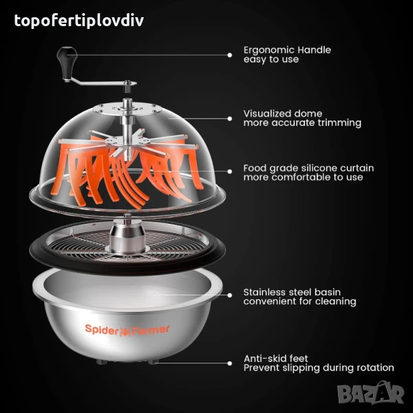 Тример Spider Farmer 16 инча,машина за рязане с центрофуга за растителни пъпки,цветя и билки