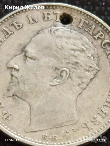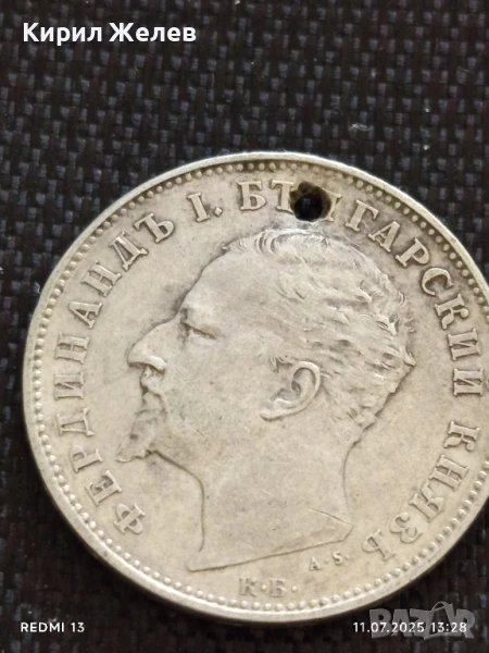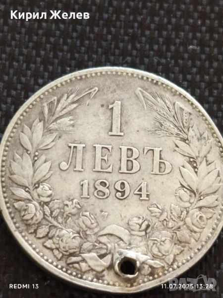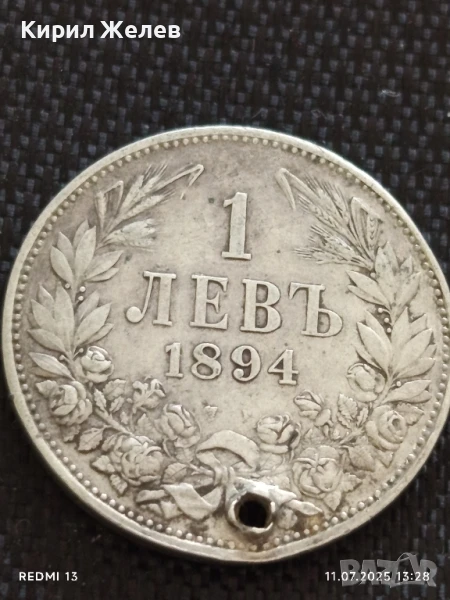 Сребърна монета 1 лев 1894г. Княжество България продупчена за НАКИТ, НОСИЯ, КОЛЕКЦИЯ 26731 → Обява 50986307