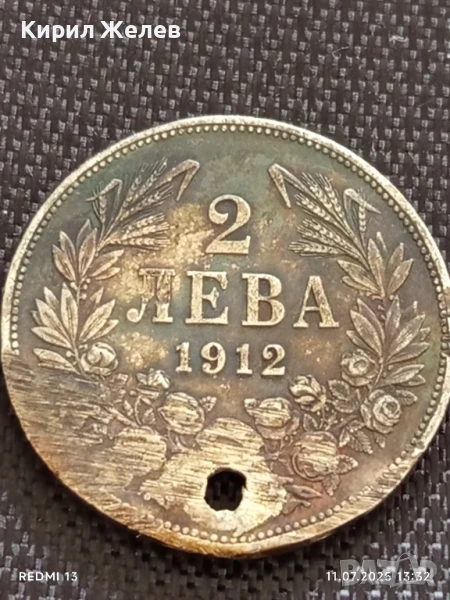 Сребърна монета 2 лева 1912г. Царство България продупчена за НАКИТ, НОСИЯ, КОЛЕКЦИЯ 31487