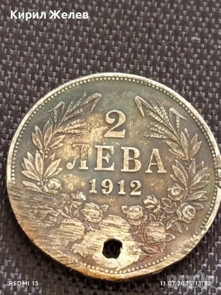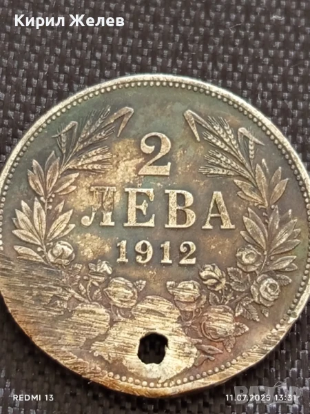 Сребърна монета 2 лева 1912г. Царство България продупчена за НАКИТ, НОСИЯ, КОЛЕКЦИЯ 31487 → Обява 50986338
