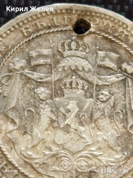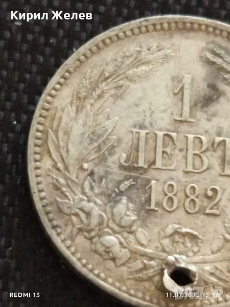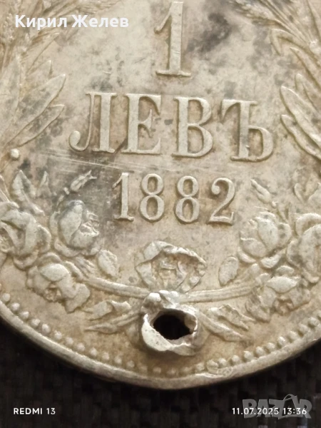 Сребърна монета 1 лев 1882г. Княжество България продупчена за НАКИТ, НОСИЯ, КОЛЕКЦИЯ 29718 → Обява 50986401