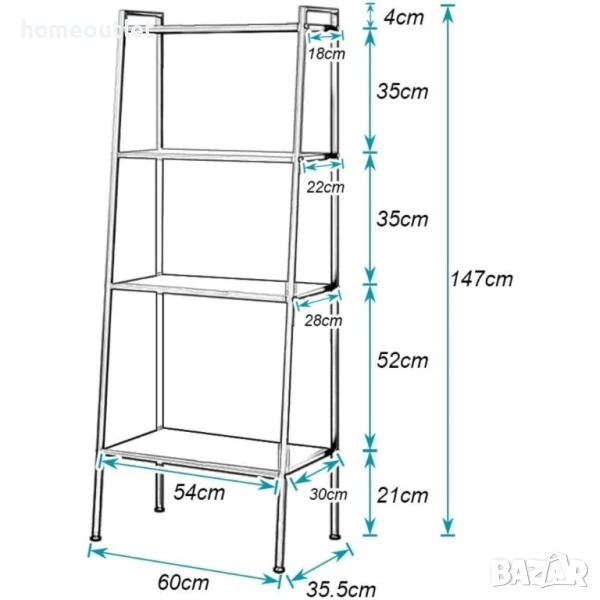 Дизайн с 4 нива, подходящ за малки пространства, оптимизира съхранението и пести пространство.