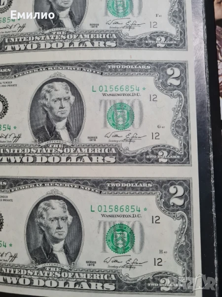 RARE.USA. UNCUT SHEET 4 GEM 1976 STAR $ 2 DOLLARS STAR NOTES, снимка 1 - Нумизматика и бонистика - 50987020 RARE.USA. UNCUT SHEET 4 GEM 1976 STAR $ 2 DOLLARS STAR NOTES, снимка 2 - Нумизматика и бонистика - 50987020 RARE.USA. UNCUT SHEET 4 GEM 1976 STAR $ 2 DOLLARS STAR NOTES, снимка 3 - Нумизматика и бонистика - 50987020 RARE.USA. UNCUT SHEET 4 GEM 1976 STAR $ 2 DOLLARS STAR NOTES, снимка 4 - Нумизматика и бонистика - 50987020 RARE.USA. UNCUT SHEET 4 GEM 1976 STAR $ 2 DOLLARS STAR NOTES, снимка 5 - Нумизматика и бонистика - 50987020 1/5