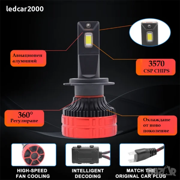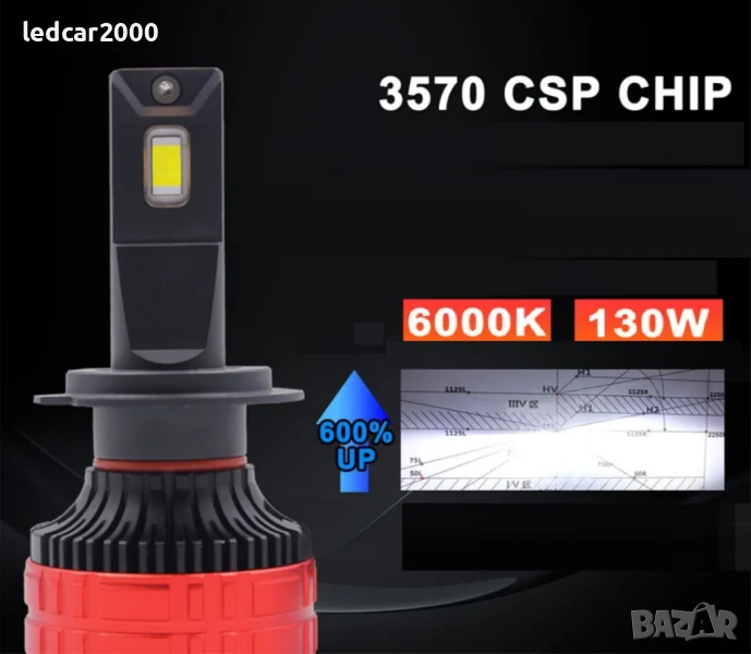 Ново поколение Лед Крушки за фарове с превъзходни характеристики на лъча с повишена яркост. Балансирана Мощност от 65W. на крушка. Вакумния меден компонент които в този модел са 2 броя (топлинна тръба) охлажда с пъти по-ефективно от стандартния меден профил ,който се използва при стандартните лед крушки. Крушки създадени изцяло за новото поколение автомобили със много дълъг живот. Подходящи за всички класове автомобили и камиони. Подхождящи за фарове с лупи и рефлектор, за къси - дълги и светлини за мъгла.
