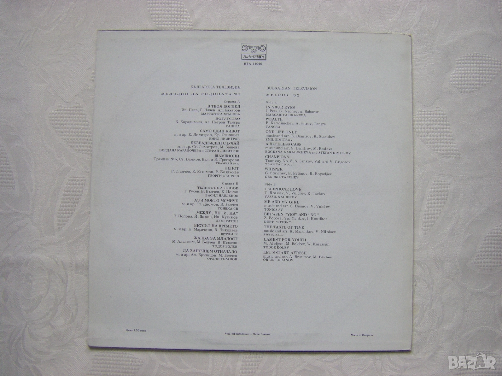 Грамофонна плоча - ВТА 11040 - Българска телевизия - Мелодия на годината 82