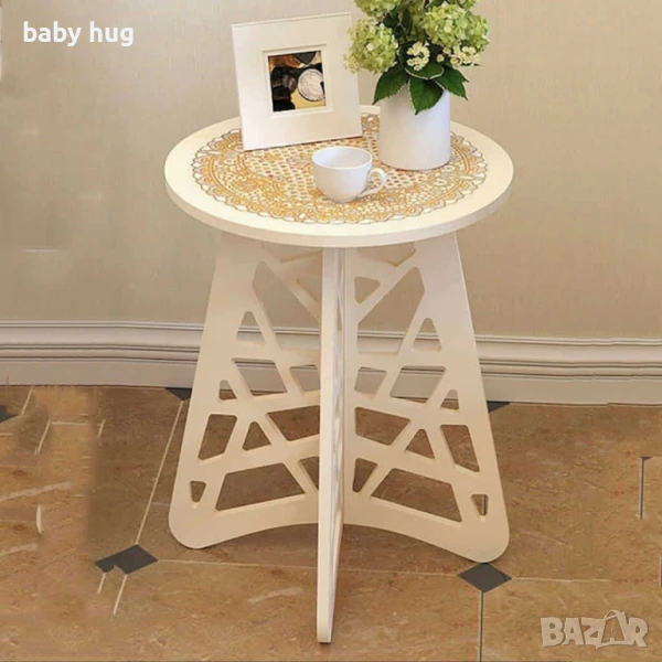 Стилна кръгла холна маса с ажурни крака – Бял елегантен акцент за всяко пространство.