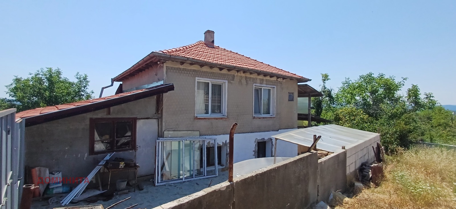 Към къщата има изградена лятна кухня и допълнителна пристройка с една спалня, санитарен възел и складово помещение. Здрава и стабилна тухлен постройка с дебели каменни основи и красив дъбов гредоред. Къщата не се нуждае от сериозни ремонти. Отремонтиран покрив и подменена дограма! Обитава се целогодишно. Референтен номер H-1446175