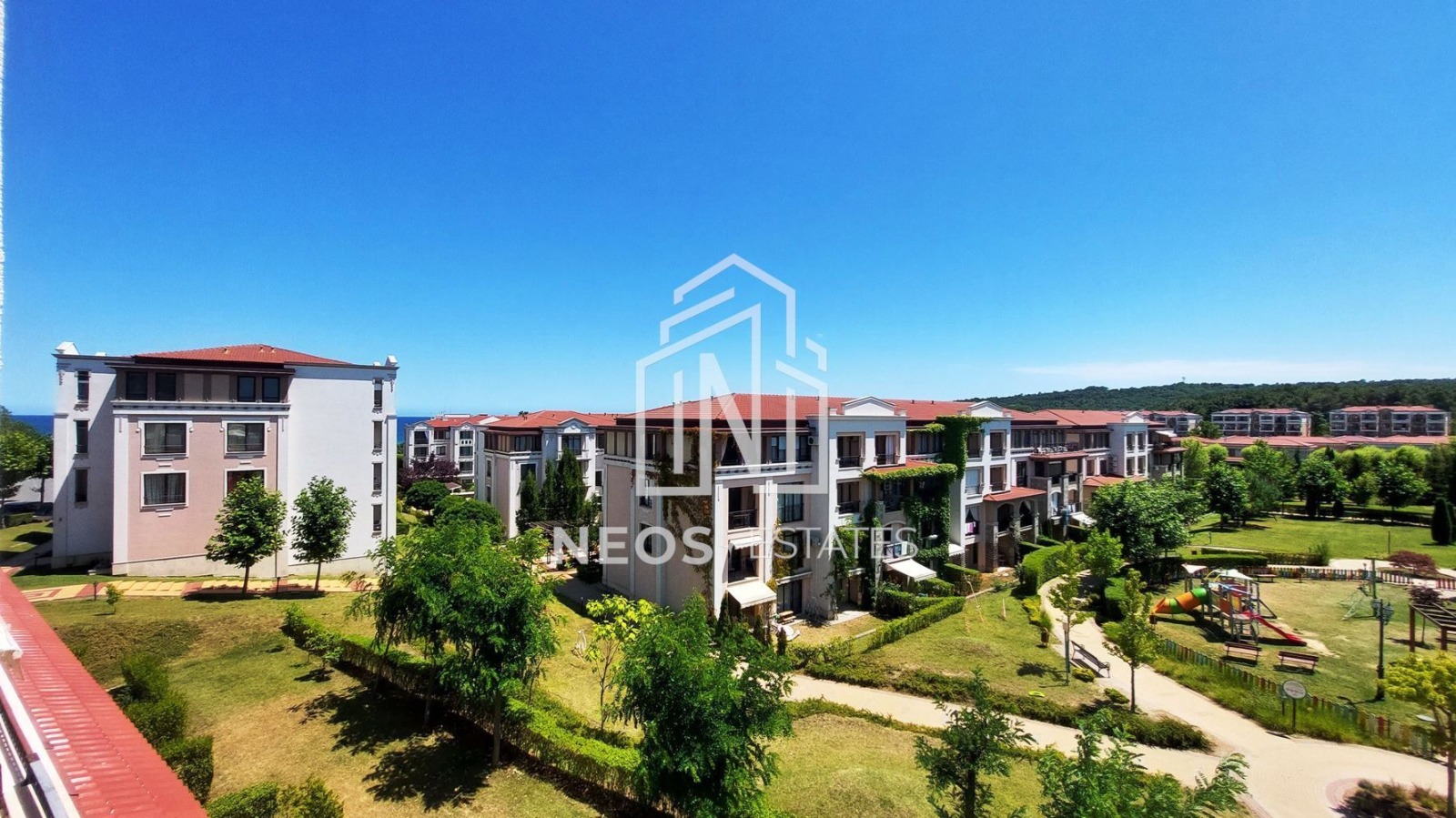 Сградата, в която се намира жилището, е в близост до басейни, ресторант, детски кът, паркинг, магазин, спортни игрища и т.н. Разстоянието до морето е 400 метра!