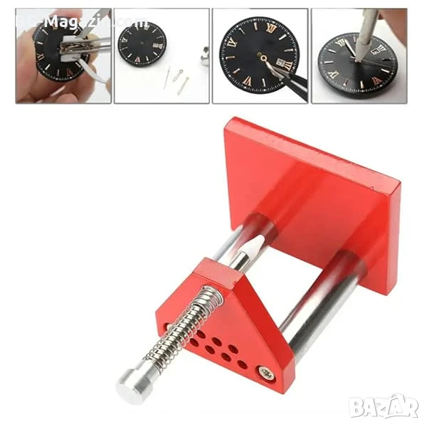 Поставяне на стрелки: Инструментът е предназначен за прецизно и безопасно поставяне на стрелките на часовника.