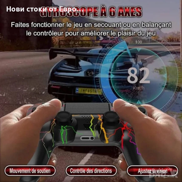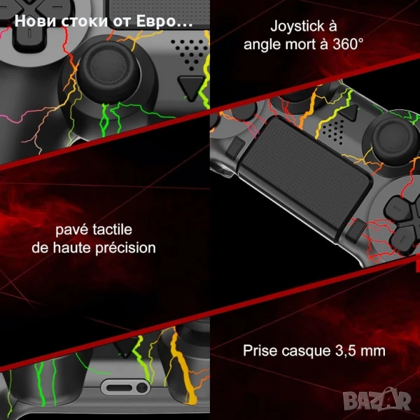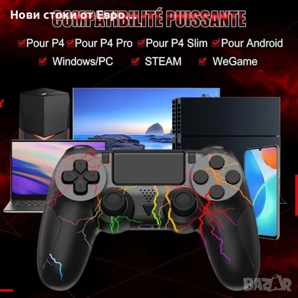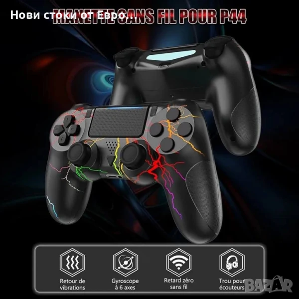контролер за PS4, RGB безжичен контролер Pro контролер с LED светлина, 3.5 мм аудио жак, 6 оси и двойна вибрация, съвместим с PS4/Slim/Pro и Windows PC.Съвместимост】Безжичният контролер е напълно съвместим с PS4/PS4 Slim/PS4 Pro с технология Bluetooth 5.0, осигурявайки стабилен сигнал в рамките на 10 м без забавяне или загуба. Когато свържете контролера към конзолата за първи път, трябва да използвате USB кабела за зареждане и след това да натиснете бутона HOME.【RGB светлини】 Контролерът за PS4 има 9 страхотни режима на осветление. Натиснете едновременно бутоните SHARE и OPTIONS, за да го настроите на любимия си режим. RGB контролерът ще ви донесе различно игрово изживяване.【По-дълго време за игра】2-4 часа за пълно зареждане, можете да продължите да играете 8-10 часа, така че забавлението ви да не бъде прекъсвано. Капацитетът на батерията е увеличен с 60% в сравнение с батерията на други обикновени PS4 контролери.【6 оси и двойна вибрация】Този безжичен контролер за PS4 разполага с 6-осен жироскопичен сензор, който ви помага да реагирате бързо и ви позволява да стартирате и спирате движения без забавяне. Вградени двойни вибрационни мотори за по-реалистично игрово изживяване. 【Ергономичен дизайн и аудио жак】Ергономичният дизайн позволява перфектно прилягане на контролера за дълги часове игра без умора. Снабден с 3,5 мм жак за слушалки, можете да се насладите на играта със семейството или приятелите си.