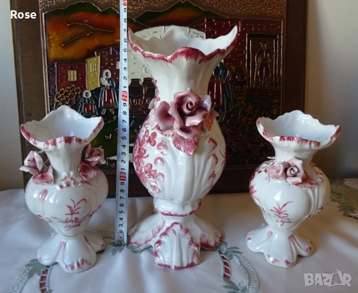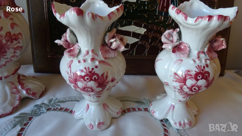 Комплект вази Bassano Italy с рози и цветен декор. → Обява 50988749