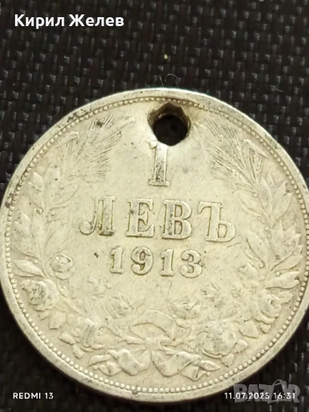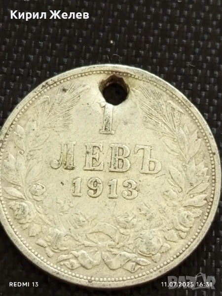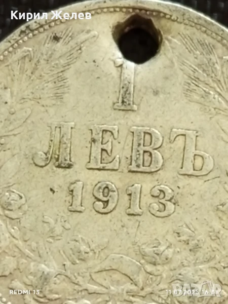 Сребърна монета 1 лев 1913г. Царство България продупчена за НАКИТ, НОСИЯ, КОЛЕКЦИЯ 18407 → Обява 50988849