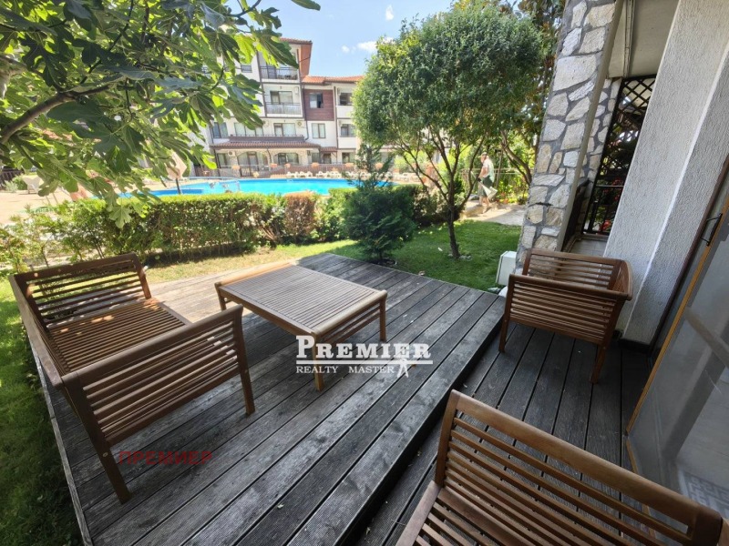 Апартамент точно над яхтеното пристанище в Свети Влас. Състои се от коридор, две бани, две спални, просторна всекидневна, собствен двор, тераса и склад. Напълно обзаведен и готов за нанасяне. Комплексът предлага спа център, фитнес, детски клуб, бутици, супермаркет, открит амфитеатър. Без комисионна от купувача!
