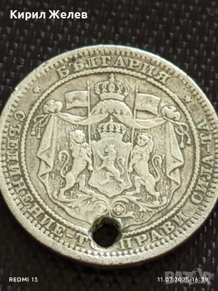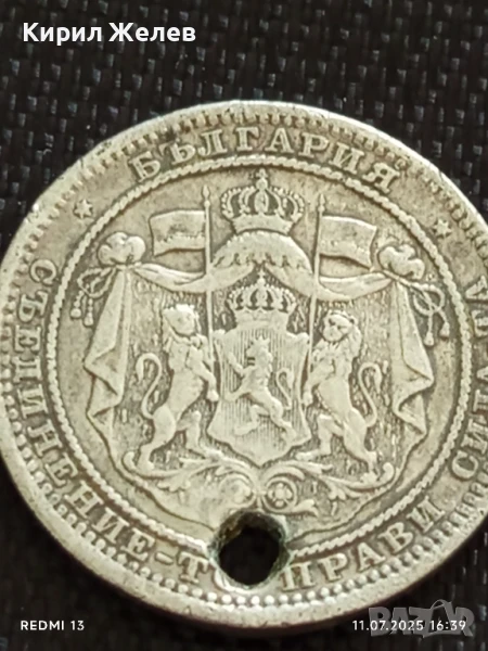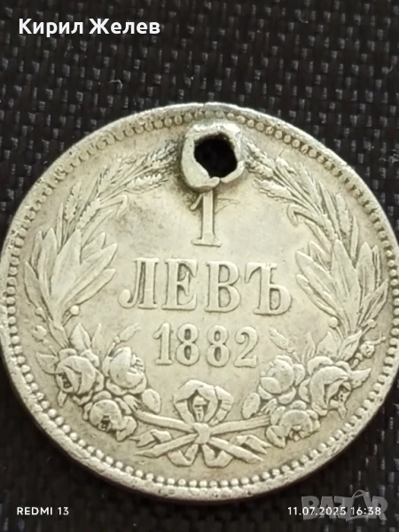 Сребърна монета 1 лев 1882г. Княжество България продупчена за НАКИТ, НОСИЯ, КОЛЕКЦИЯ 38258 → Обява 50988927
