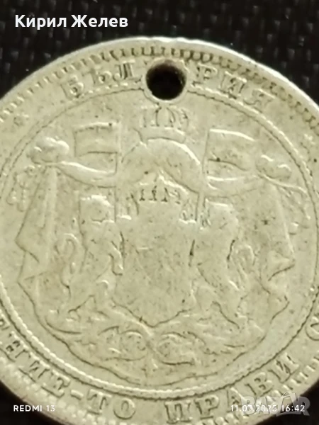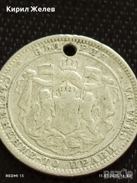 Сребърна монета 1 лев 1882г. Княжество България продупчена за НАКИТ, НОСИЯ, КОЛЕКЦИЯ 72331