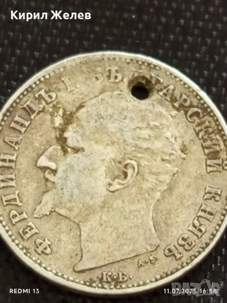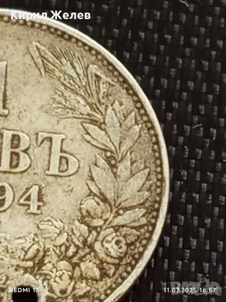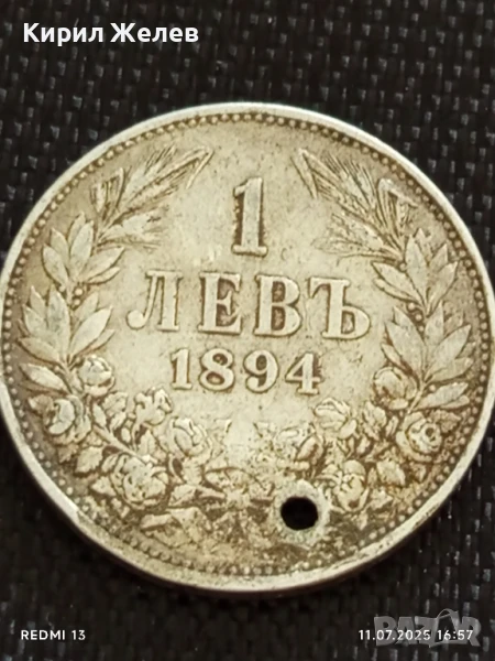 Сребърна монета 1 лев 1894г. Княжество България продупчена за НАКИТ, НОСИЯ, КОЛЕКЦИЯ 10946 → Обява 50989129
