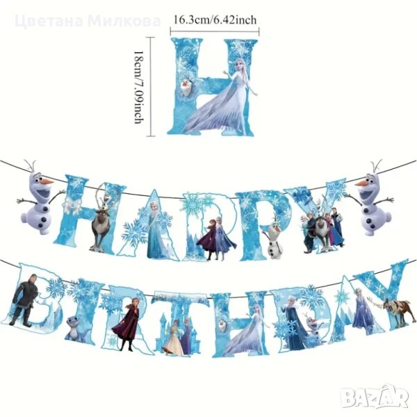 Тематичен надпис за рожден ден с героите от Леденото кралство!