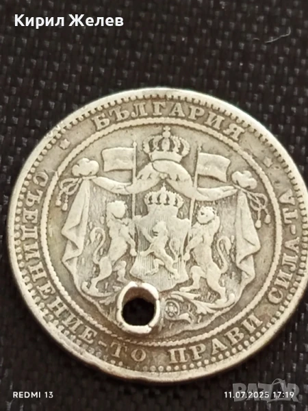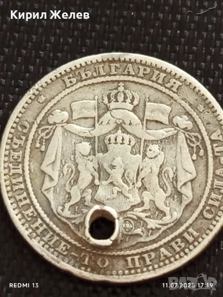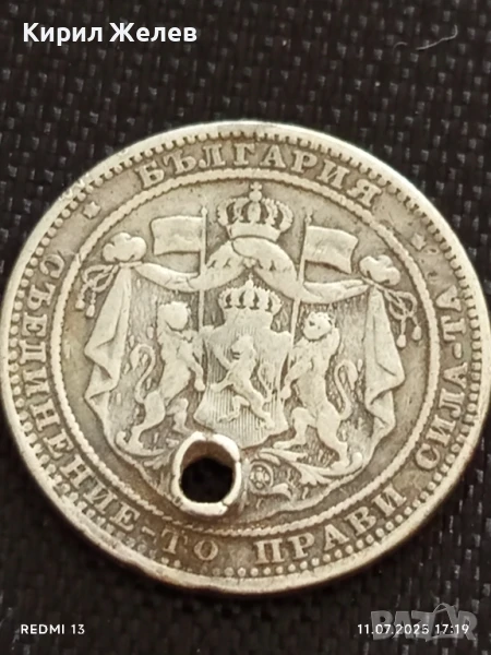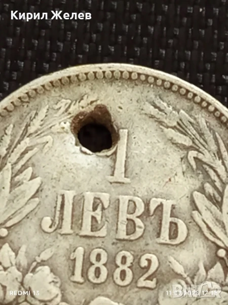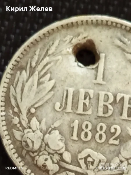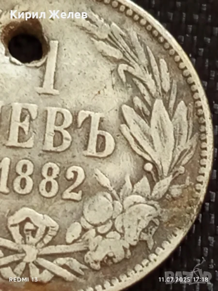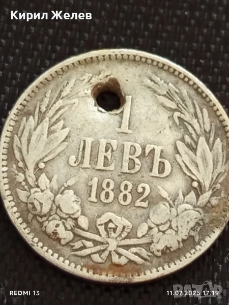 Сребърна монета 1 лев 1882г. Царство България продупчена за НАКИТ, НОСИЯ, КОЛЕКЦИЯ 40050 → Обява 50989348