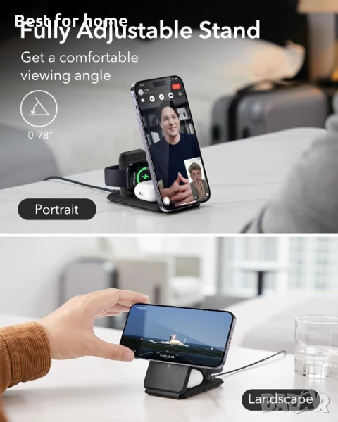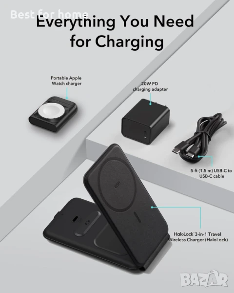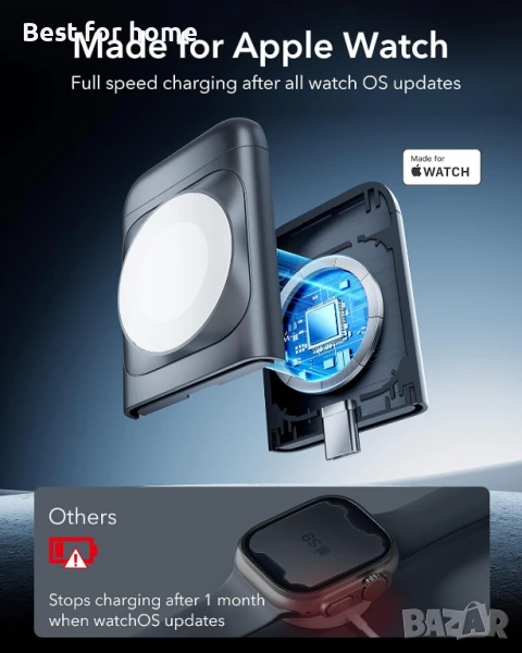 Преносимо зарядно за часовник: малкото и леко USB-C зарядно ви позволява да зареждате множество устройства в движение, така че можете да се наслаждавате на безжично магнитно зареждане без заплитане за вашия часовник по всяко време и навсякъде.