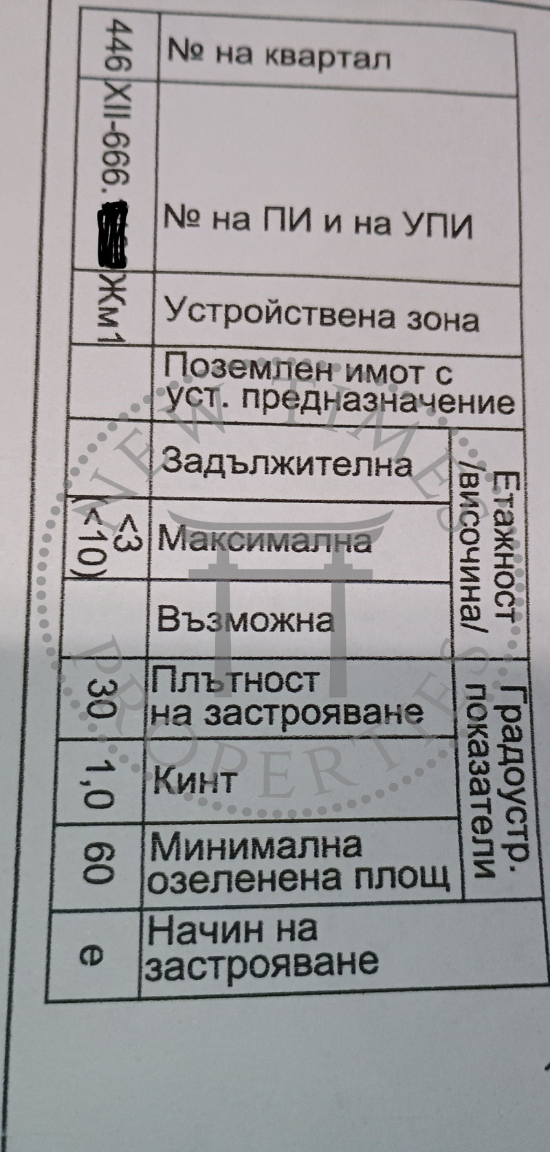 Макс 10 м. височина, макс 3 етажа,