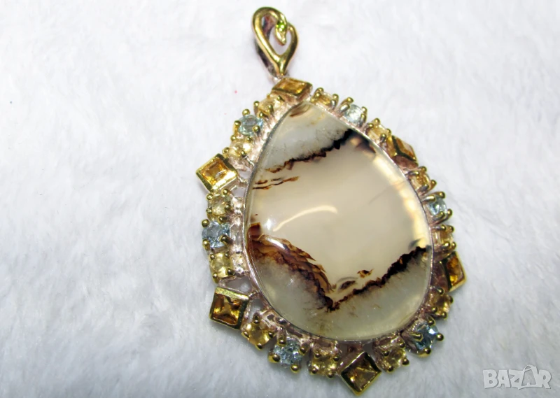 55x35x7мм, тегло 14.9гр. Другите камъни са топаз и цитрин. Произход Африка. Покритие с бяло и жълто злато