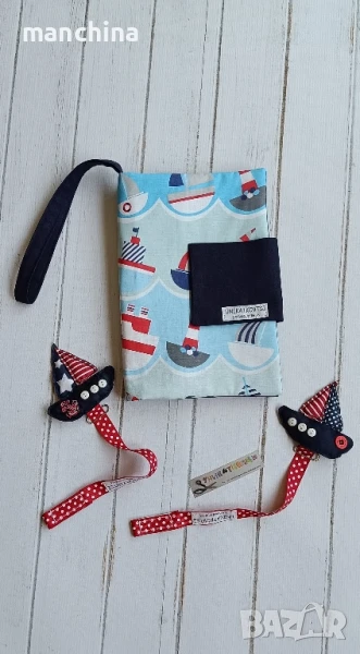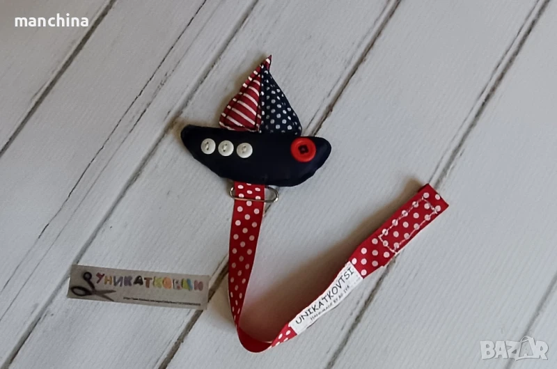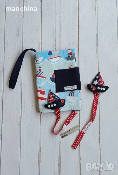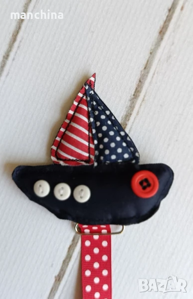 Ръчно изработен текстилен клипс за биберон.Може да се комбинира в сет с органайзер за пелени/памперси "Море"