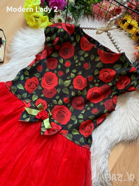 Червена рокля с рози и тюл, снимка 1 - Рокли - 50991086 Червена рокля с рози и тюл, снимка 2 - Рокли - 50991086 1/2