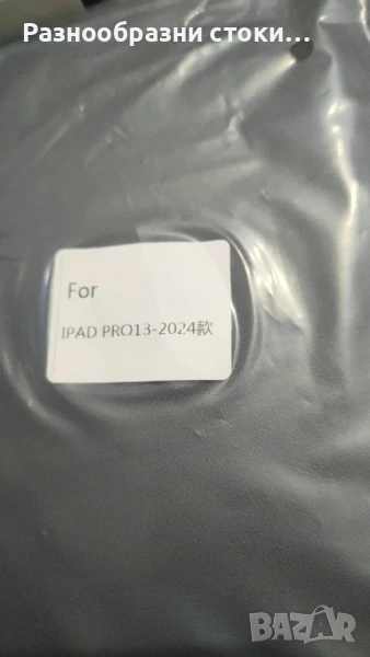 Комплект аксесоари за таблет, включващ защитен калъф и отделна Bluetooth клавиатура с тъчпад. Ето основните характеристики: * Тип на продукта: Защитен калъф (кейс) тип "фолио" с отделяема безжична Bluetooth клавиатура и вграден тъчпад. * Съвместимост: Специално предназначен за iPad Pro 13-инчов модел от 2024 г. (както е посочено на стикера "For IPAD PRO13-2024款"). * Клавиатура: * Свързва се с таблета безжично чрез Bluetooth. * Има вграден тъчпад, който позволява управление на курсора, подобно на лаптоп. * Подредбата на клавишите е QWERTY, но включва и букви от кирилицата, което е подходящо за български или други езици с подобна азбука. * Калъф: * Представлява твърд калъф, който осигурява защита за гърба и страните на таблета. * Фолио частта (която се сгъва) предпазва екрана и може да служи като стойка.