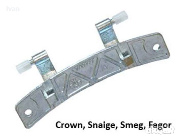 Люкът е с оригиналната си панта, Пантата е съвместима с автоматични перални марки Crown, Voltel, Snaige,Smeg, Sangiorgio, Fagor, Волтел, Краун, Снайге, Санджорджио, Фагор,.