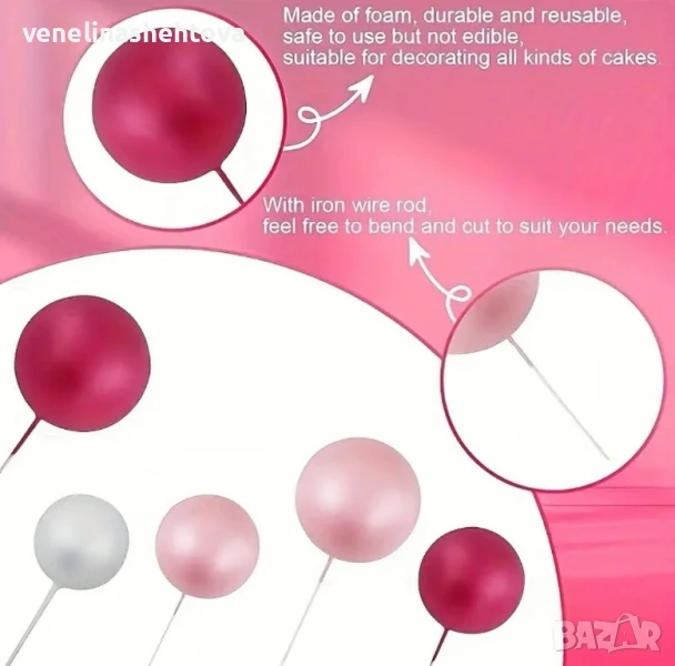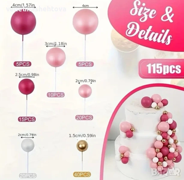 115 броя розови бели златисти топчета топки на тел от стиропор за декорация на торта , снимка 1 - Други - 50991826 115 броя розови бели златисти топчета топки на тел от стиропор за декорация на торта , снимка 2 - Други - 50991826 115 броя розови бели златисти топчета топки на тел от стиропор за декорация на торта , снимка 3 - Други - 50991826 115 броя розови бели златисти топчета топки на тел от стиропор за декорация на торта , снимка 4 - Други - 50991826 115 броя розови бели златисти топчета топки на тел от стиропор за декорация на торта , снимка 5 - Други - 50991826 1/5