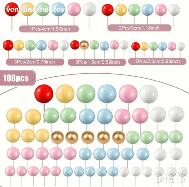 108 броя топчета топки на тел от стиропор за декорация на торта → Обява 50991866