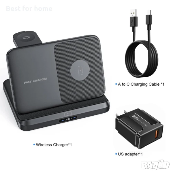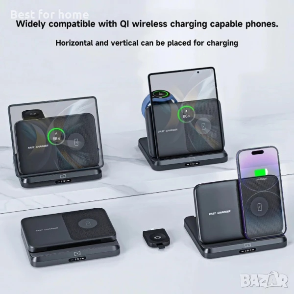 【Безжична зарядна станция 3 в 1 за Samsung】 Тази безжична зарядна станция е проектирана специално за Samsung Galaxy и е широко съвместима с Galaxy Z Fold 6/5/4/3/; Z Flip 6/5/4/3; Galaxy S24 S23 S22 S21 S20/Ultra/Plus; S10/S10+/S9/S9+; Note20/10/9/8; Galaxy Watch Ultra/7/6/6 Classic/5 Pro/5/4/4 Classic/3/Active2/1; Galaxy Buds3/Pro/Buds+/Buds2/Live; Може да зарежда и iPhone 15/14/13/12/11/X/XR.