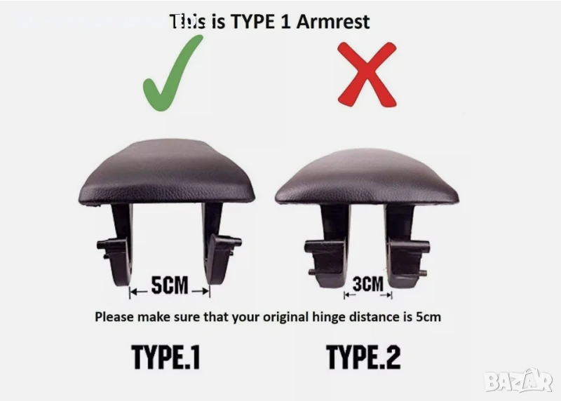 Има два модела подлакътници, вижте снимка 3 и снимка 4( Разликата е в пантите за монтаж, моля проверете вашите преди поръчка)