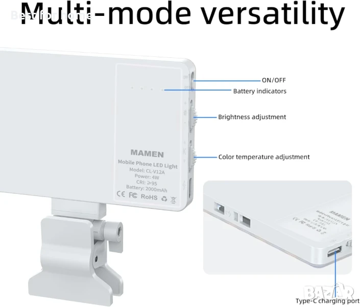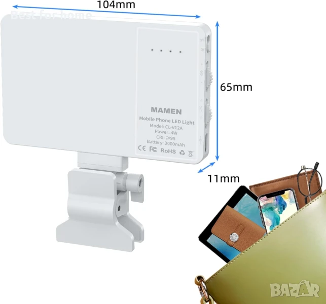 【Супер дълъг живот на батерията и преносимост】 Преносимата лампа за телефон има вградена литиева батерия с капацитет 2000mAh, която има дълъг живот на батерията и може да издържи около 2 часа на максимална мощност. Дизайнът е малък и компактен, лек и може да се носи в чанта или джоб, без да заема място. Това е преносима лампа за запълване на снимки.