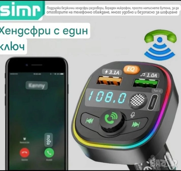 ФМ Блутут Трансмитер за кола , слушане на музика и провеждане на тел разговори → Обява 50992289