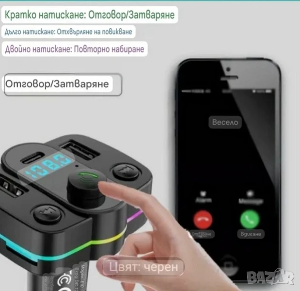 ФМ Блутут Трансмитер за кола , слушане на музика и провеждане на тел разговори