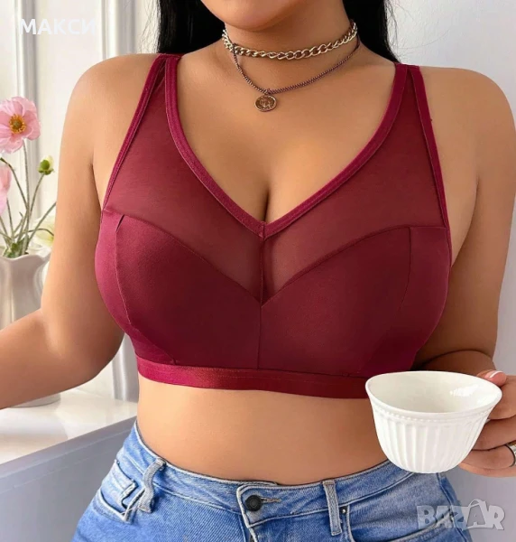 Макси удобен красив сутиен с прозрачни елементи и коригиращи се презрамки в червено, бордо, тъмно си