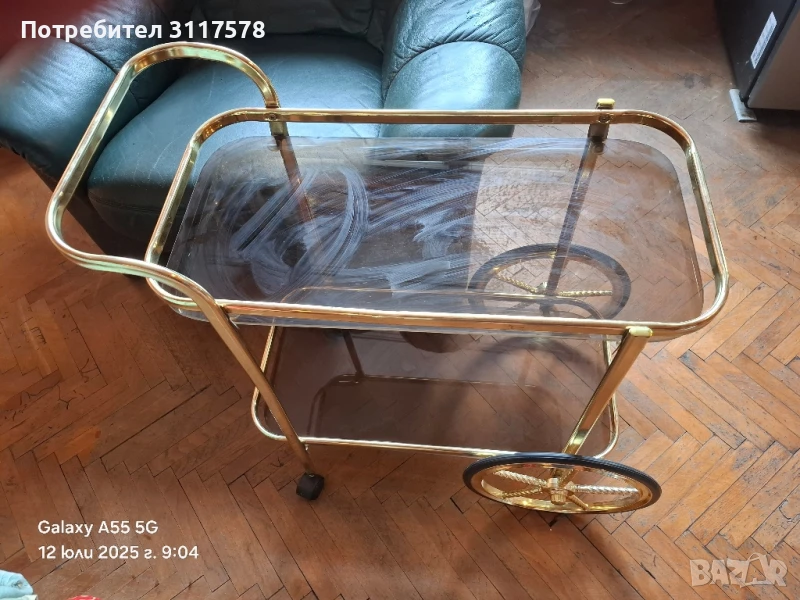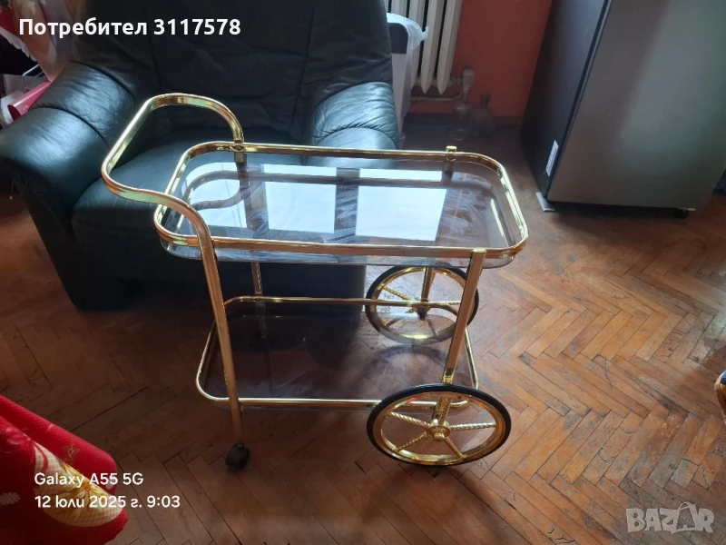 В Отлично ново състояние количка много красива с позлатени елементи и затъмнени стъкла за сервиране на Алкохол Кафе Чай и др.