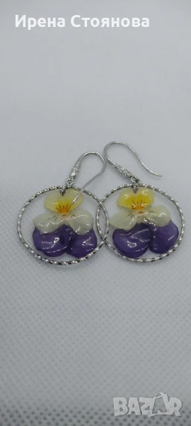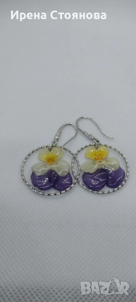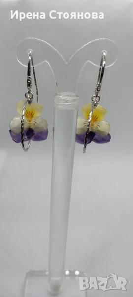 Обеци с естествен цвят на мини градинска теменужка. → Обява 50995429