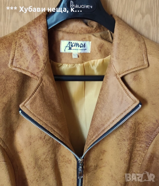 Дамско сако цвят горчица: Сакото е уникално, платът е фин, имитиращ велур.