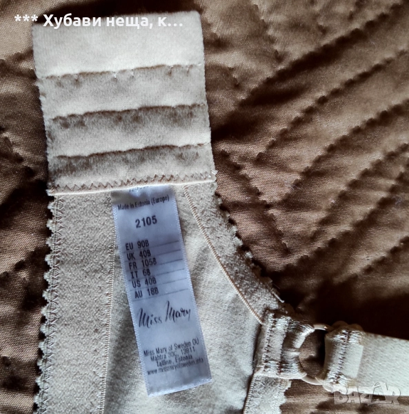 красива дантела. Много стабилен за едър бюст. Широки поддържащи презрамки. Отзад е с тройно закопчаване. Вносен, нов, без етикет, затова цената е силно занижена. По етикет 90/ В. За съжаление не ми е по мярка затова го предлагам тук. Цена 20 лв.