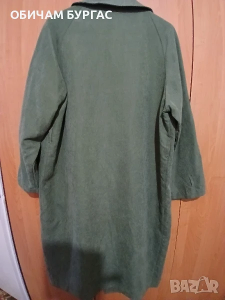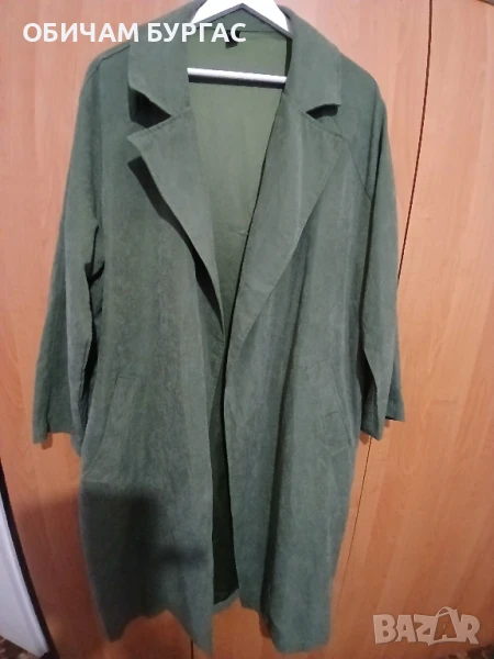 ВРЪХНА ДРЕХА/манто/ ОТ ФИН ВЕЛУР В МАСЛЕНО ЗЕЛЕН ЦВЯТ БЕЗ ЗАКОПЧАВАНЕ С ДЖОБОВЕ.напълно запазено → Обява 50996377