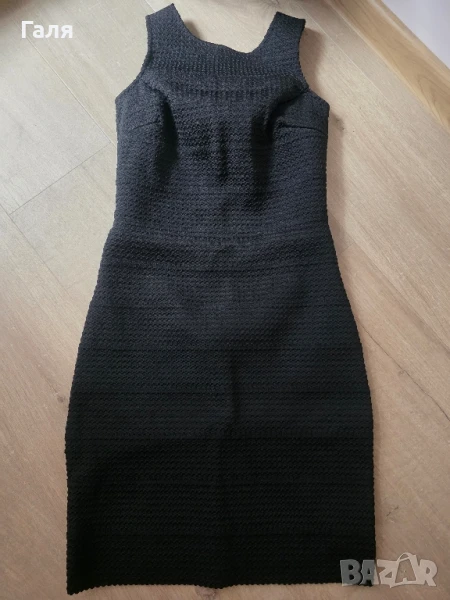 Черна рокля от плътна ластична материя с отворен гръб. В перфектно състояние без забележки. Дължина 85 см.