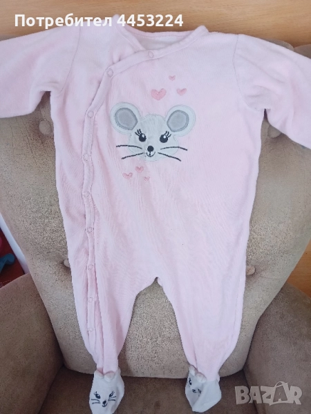 Всичките са в идеално състояние, първят леопардов е за 3-6мес, с мишката е за 9-12мес, третият е дебел и е гащеризон-спален чувал за възраст 18-24мес, даже и за 2-3год. И трите са по 5лв.Следващия чисто бял е за 3-6мес, предпоследния е за 12-18мес, и последния с мини мауса е за 18-24мес. Последните три са по 2лв.