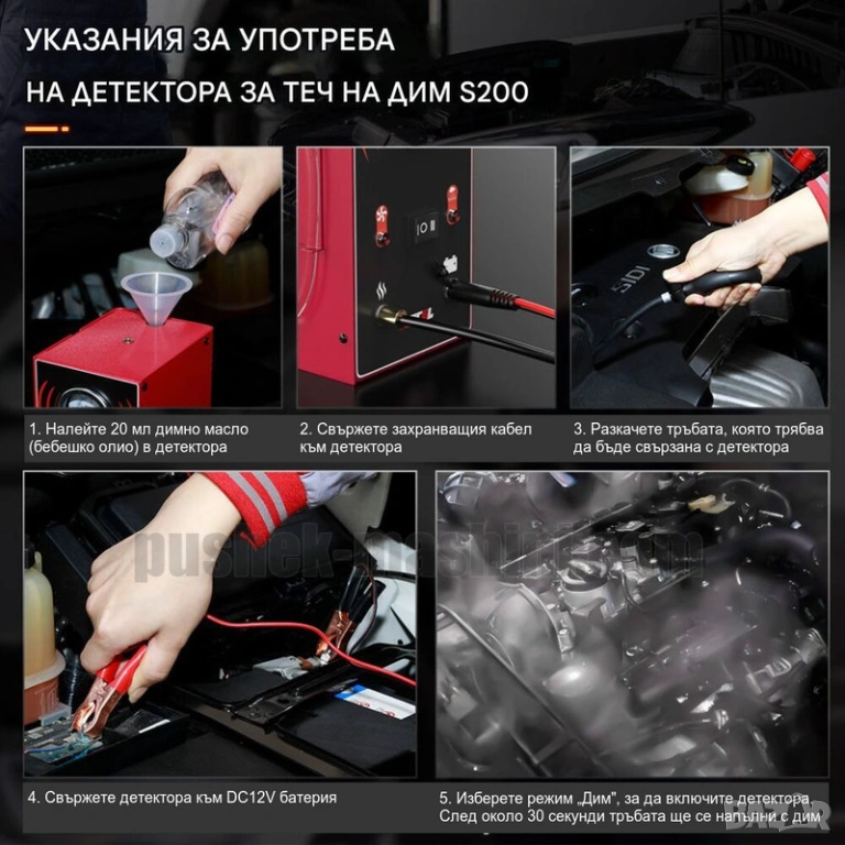 Автомобилен тестер за откриване на течове с пушек