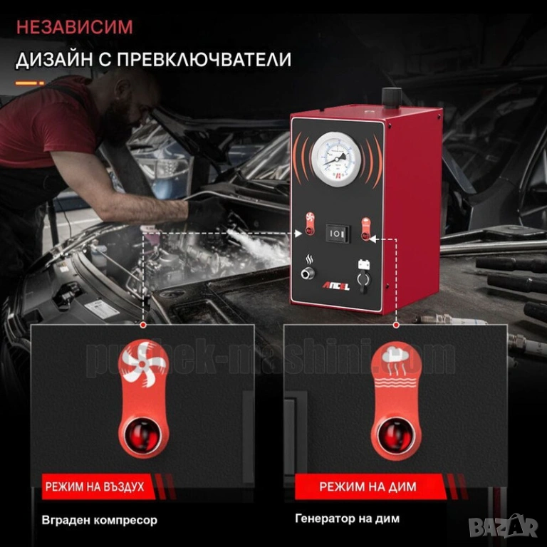 Димогенератор за проверка херметичността на различни автомобилни системи.
