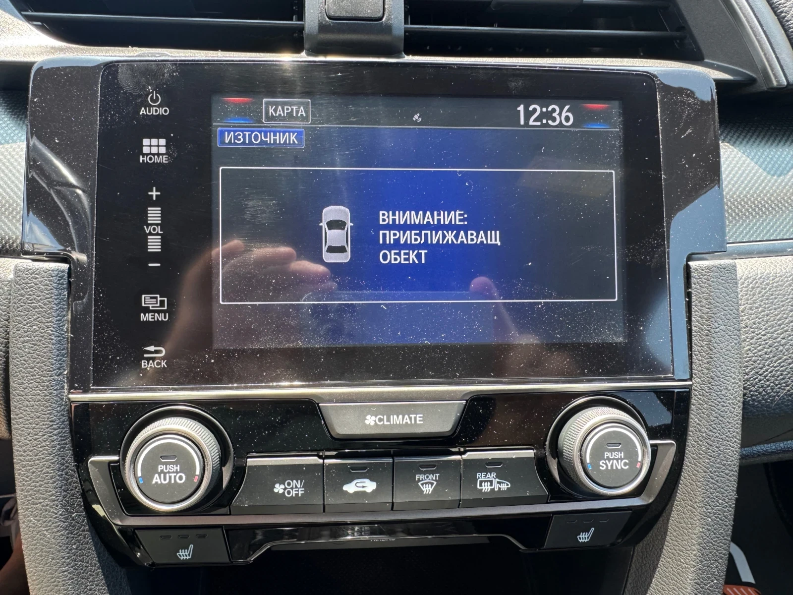 Honda Civic 1. 6 I-Dtec! Перфектно техническо и визуално състояние! Регистриран автомобил със всичко платено! Двузонов климатроник, спортен салон с подгряване, автоматична скоростна кутия с възможност за превключване от волана, дистроник, темпомат, четене на знаци и маркировка, преден + заден парктроник, камера за заден ход, мултимедия с навигация и CarPlay, меню на Български, виртуално табло, черен таван, 2 бр ключа, тонирани прозорци, дневни LED светлини, ксенонови фарове и други. За повече информация на посочения телефон! Възможност за Лизинг с 30% авансова вноска и 11 % годишно оскъпяване! Автомобилът се намира в двора на автокъща Лонгино на гл. път Е-79 на влизане в гр. Дупница!